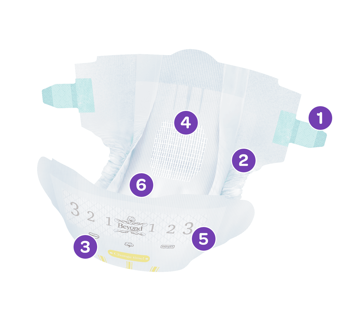A clever design that prevents leakage happening out the back of the nappy. *Only Available in Newborn (Size 1), Infant (Size 2), and Size 3.